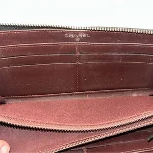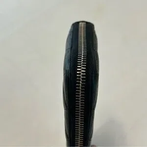 Authentic Chanel Lambskin Leather Quilted Black ZIP Around Wallet S# 20269630