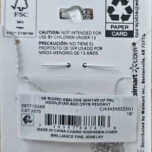 Discover elegance with the Brilliance sterling silver necklace, featuring a captivating moon pendant with mother of pearl and abalone accents. A perfect addition to elevate any ensemble.