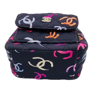 CHANEL NAVY MULTI CLASSIC CC CHAIN POCKET CC LOGO PRINTED QUILTED FABRIC MINI BA