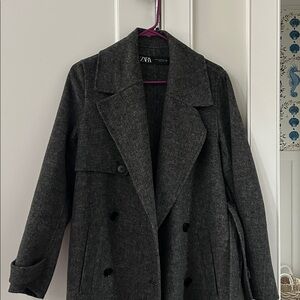 Women's Zara Gray Wool Blend Trench Coat