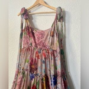 Anthropologie Geisha Designs Isabella Tiered A-line midi dress romantic floral