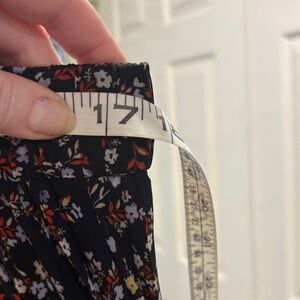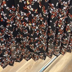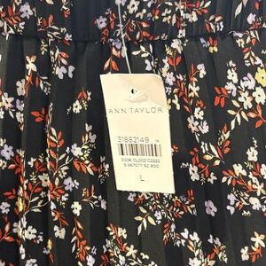 Chic black midi pleated skirt with floral design from Ann Taylor, new with tags. Perfect for versatile styling. Never worn, no rips, tears or stains. Measurements in pictures, first is across waist and second is length from waist to hem. Non-smoking household.