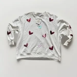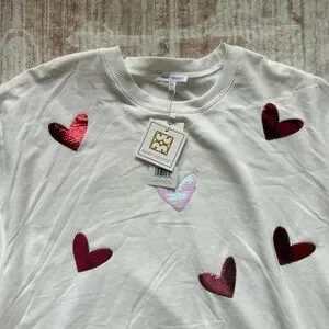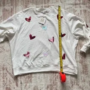 Mary Square XL Sequin Heart Sweatshirt Cream Valentine NWT Oversized