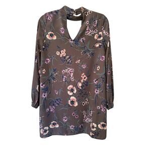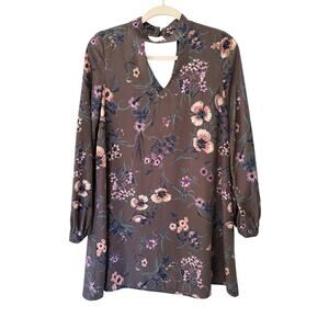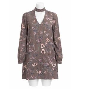 Altar’d State Floral Choker Neck Long Sleeve Shift Dress Taupe Small