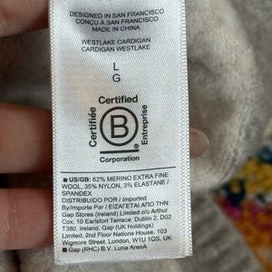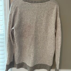 Cozy cardigan with gray trim. Button closure. Perfect for layering. Only worn twice, in good condition.