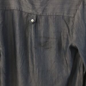It has a button down next line and roll up sleeves. It doesn’t have any major wearing but when taking the pictures I did notice some slight blue discoloration on the back. I took some pictures of that to show it.