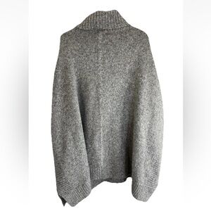 J. Crew Poncho Sweater M/L Wool Alpaca Blend Turtleneck Pullover Pockets Gray