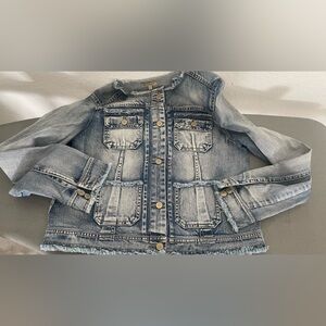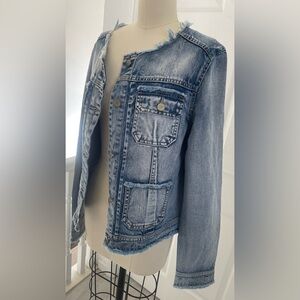 Stylish DEMORACY denim jacket with a classic blue wash. Perfect for casual outings.