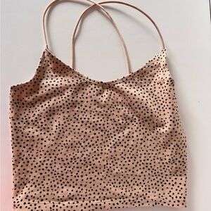 Chic camisoles with spaghetti straps. Solid pink and tan with polka dots. Perfect for versatile styling.