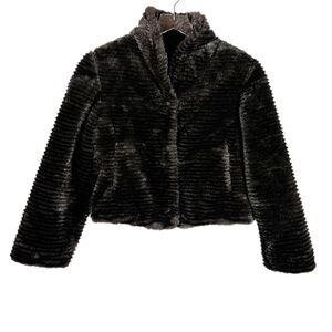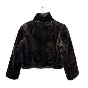 NANA CREATIONS USA Small Dark Chocolate Brown Faux Fur Ribbed Cropped Jacket