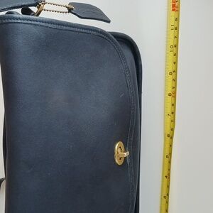 Gently Used. Vintage Coach City bag in navy blue leather and brass hardware. Recently conditioned with coach product. Corner edges have been touched up with color as there was a little color wear. Made in the USA #9790. This bag is clean inside and out.