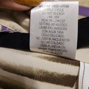 Machine wash warm. Gentle cycle. Do not bleach. Line dry. Iron on lowest setting as needed.