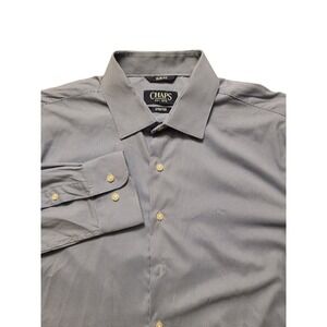 Keywords: Chaps shirt, Mens dress shirt, Blue gingham, Slim fit, Stretch fabric, Button down, Long sleeve, Business casual, Office wear, Everyday shirt, Classic style, Modern fit, Plaid pattern, Comfortable