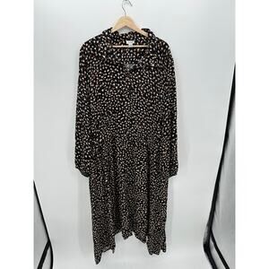 Avenue Womens Maxi Dress Size 30/32 Button Front Long Sleeve Collar Peasant Boho