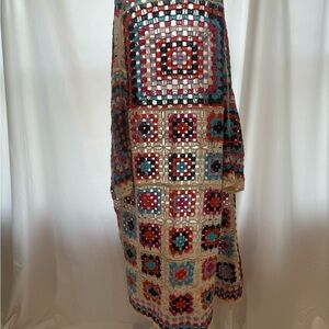 Bohemian POL granny squares crochet maxi midi duster cardigan topper colorful gypsy western coastal beach