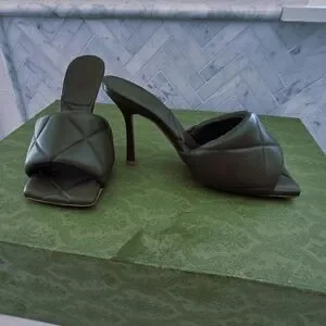 Gorgeous Bottega Veneta Lido Quilted Army Green Heels