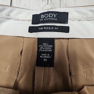 The Body By Victoria The Rose Fit Size 10 Loose Flare Pants in Coastal Neutral are versatile dress pants suitable for various occasions such as travel, weddings, parties, casual outings, and business meetings. The pants feature a mid-rise fit with a flat front and a 32-inch inseam, made from a comfortable cotton blend knit fabric. With a button and zipper closure, these pants are easy to care for and include pockets for added convenience. The beige color and flared leg style add a touch of bohemian and retro charm to the outfit, perfect for the fashion-forward woman looking for a blend of hipster and beachy aesthetics.