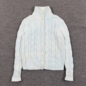 Chaps Cable-knit Funnel Neck Cardigan Sweater Women’s L 100% Cotton Preppy Y2K