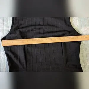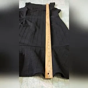 Flattering Sleeveless black dress with textured pattern and subtle single ruffle on bottom. Used once. See all pictures for details and measurements. Thank you‼️
