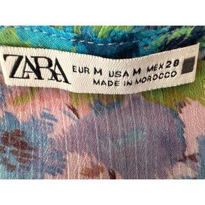 ZARA Floral Wrap Ruffle Blouse M Multicolor Sheer Long Sleeve Made In Morocco