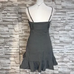 Step out in style with this elegant grey dress. Featuring a chic ruffle hem, it's perfect for any occasion. Pair it with your favorite accessories for a complete look.