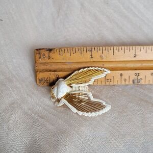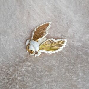 Vintage 70s-80s Monet Bee Spinnerets brooch white enamel wire wings novelty