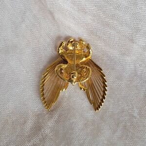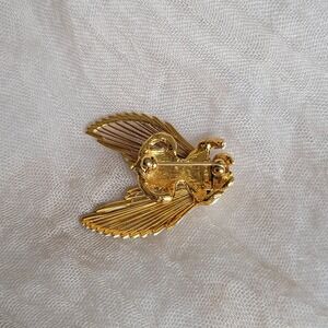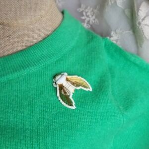 This kitschy cute bee brooch is from the Monet Spinneret collection. Super cute for spring on a sweater or lapel -- the white enamel makes it pop. The perfect size for clustering with other fun pins.