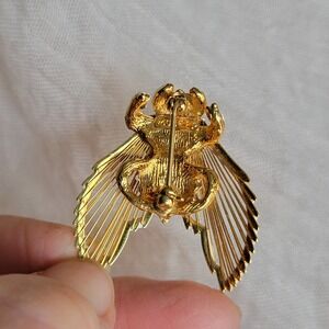 These figural brooches with wire-wrapped elements, were introduced in 1961 in all-gold finishes. According to the Monet reference book by Alice Vega, the most popular varieties, like the bee and the butterfly, were made in white enamel from the early 1970s and into the 80s. The bee was produced in several sizes and with several body variations.