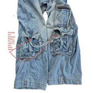 Grunge skater punk baggy utility cargo denim jeans 90s style bottoms size 10