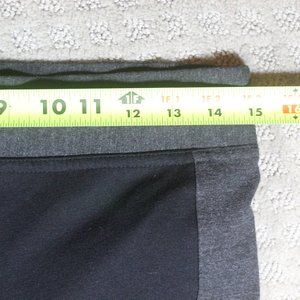Talk about slimming! These have an optical illusion of slim because of the light grey stripes down the sides and black down the middle. Added bonus: soft and comfortable! Excellent pre-owned condition.