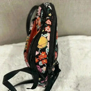 **Vera Bradley Tangerine Twist Cotton Faux Leather Black Floral Bag – 9.5” x 7.5” x 3”**