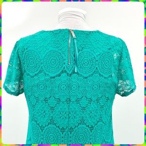 LAUNDRY Spring Green Crochet Lace Floral Medallion Overlay Shift Dress Size 14