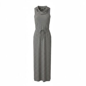 Effortlessly chic Anthropologie Dolan (Left Coast) maxi dress featuring a classic black and white striped design with a flattering drawstring waist. This sleeveless style offers an easy, relaxed fit while still defining the waist for a polished silhouette.