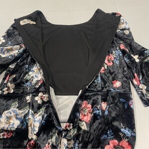 Eliza J. Women Size 12 Black Velvet Dress with Floral Design Dark Romantic