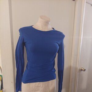 This long sleeve t-shirt is great for layering, or to wear by itself. It's bright color is fun and will definitely turn heads when you walk into a room. It's great to wear with a pair of jeans or denim skirt, or even with a pair of sweats or slacks. This top is versatile and has spandex in it, so will have a little bit of stretch to it.