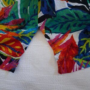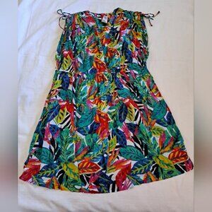 Lauren Ralph Lauren women's 1X Rainforest Tropical Farrah Mini swim cover up LR7DJ31, 1 shoulder bead is missing on the end of the shoulder ties. Elastic waist, side seam pockets, nice bright colors, VGUC