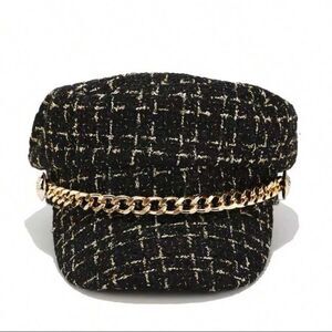 Women’s Tweed Chain Newsboy Cap – Chic & Elegant