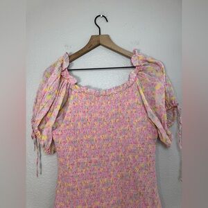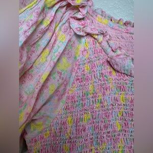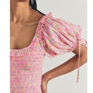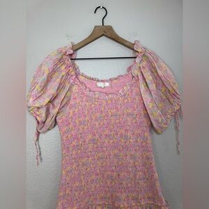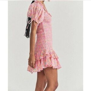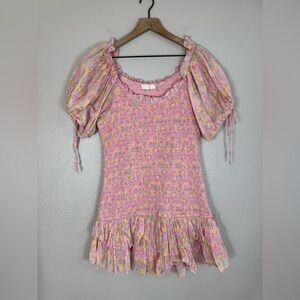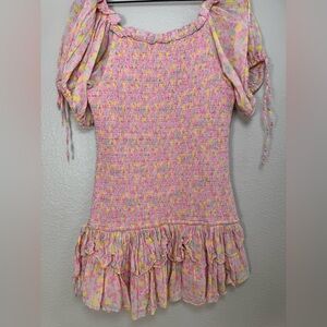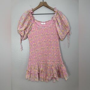 Loveshackfancy Violet Ruffle Mini Dress in Floral Melon Punch size Large $395