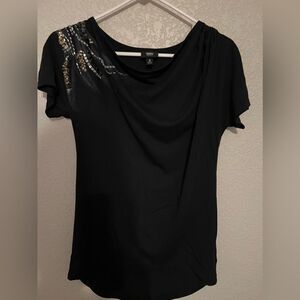 ❄️ Mossimo Women’s Beaded Sequin Gathered Shoulder Black Short Sleeve SIZE SMALL