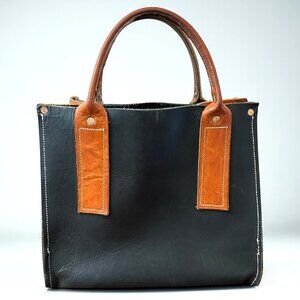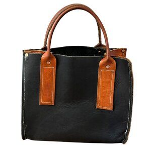Discover timeless elegance with this black and tan leather satchel. Perfect for any occasion, it combines style and practicality effortlessly.
