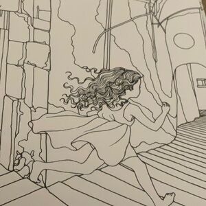 The Time Garden Will sweep you away into a whimsical cuckoo clock-inspired pen and ink by Korean artist Daria Song. Journey through the doors of the clock into the inky inner workings to discover a magical land of clock gears, rooftops, starry skies, and giant flying owls — all ready for you to customize with whatever colors you can dream up.