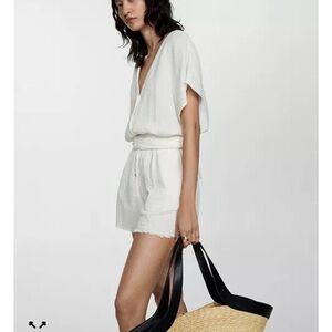 Mango White Button-Up Romper with Belt
