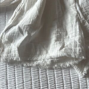 Stylish white button-up romper with a matching belt. Features short sleeves and a comfortable fit.