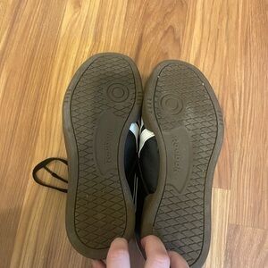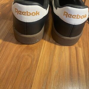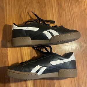 Reebok Club C Grounds UK shoes. Size 7.5. Mainly black with white detailing and brown sole. Perfect for a casual look. In good condition with now flaws.