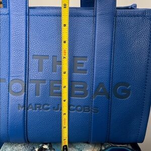 Marc Jacobs medium leather ‘THE TOTE BAG’ in cobalt blue. Inside has 1 zippered pocket and 2 slip pockets. On bottom there’s a little white mark and a little rub (see photos). Comes with dust bag, tags and adjustable detachable strap. See photos for approximate measurements.