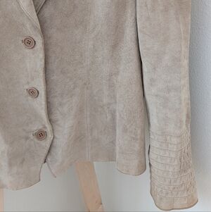 Super cool subtle puff sleeve detailed suede jacket in a unique colorway!