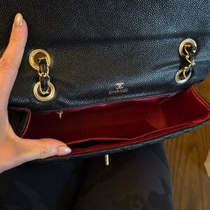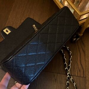 Black and gold purse- chain can adjust to also be longer and worn as a crossbody.