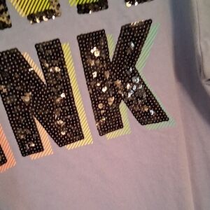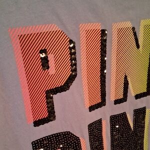 Stylish t-shirt with bold 'PINK' lettering. Features vibrant multicolor design. Perfect for casual wear. i believe this shirt is a little bigger than an extra small.I wear a medium and it fits me.\nI think it's more a small to medium