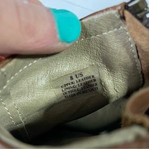 Hinge Brown Tan Boho Casual Leather Heeled Ankle Boot Booties Size 8