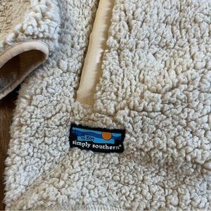 Simply Southern Cream and Multicolor Bear and Aztec Design Zip Up Sherpa Sweater